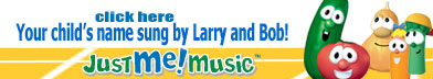 How cool would it be to have your child’s favorite characters singing their favorite song with your child’s name in the song? Well – now it is possible with a new line of CDs and books from a company called Just Me Music. They have created a great new line of CDs that has Barney, Mickey, Bob and Larry and a few other popular characters singing their trademark songs to your child. It is really a wonderful idea. I have to say that I was concerned when I first heard of this idea – I thought it would sound cheesy. The reality is that the quality is very good and the sound is seamless regarding the singing of the child’s name in the songs. They also feature a line of personalized books ( Veggietales) that insert the child’s name in the story. This is awesome!! They take into consideration the personality of the child and incorporate the child’s name as they progress through the story.